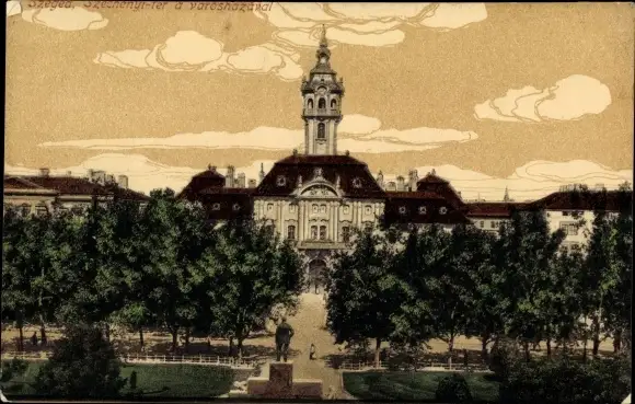 Ak Szeged Segedin Ungarn, Széchenyi tér a varoshzaval