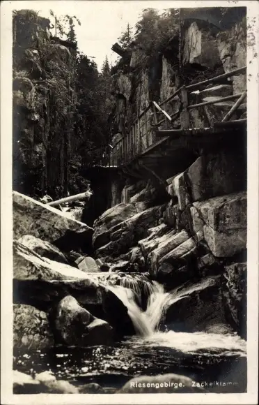 Ak Szklarska Poręba Schreiberhau Riesengebirge Schlesien, Zackelklamm, Zackelfall