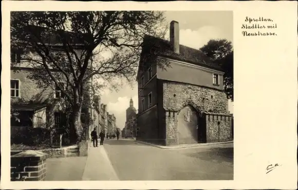 Ak Szprotawa Sprottau Schlesien, Stadttor, Neustraße