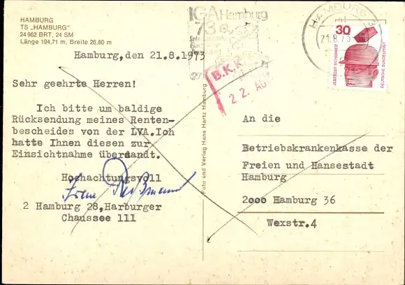 Zustand, siehe Scan, gelaufen, 1973 - ca 15 cm X 11 cm