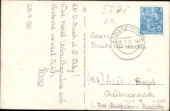 Zustand, siehe Scan, gelaufen, 1956 - ca 14 cm X 9 cm