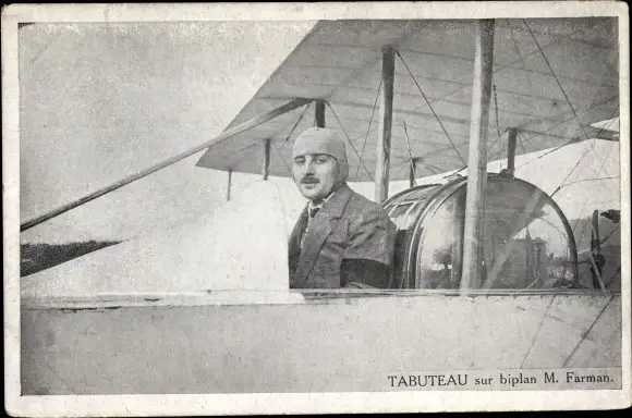 Ak Tabuteau sur biplan M. Farman, Pilot im Flugzeug