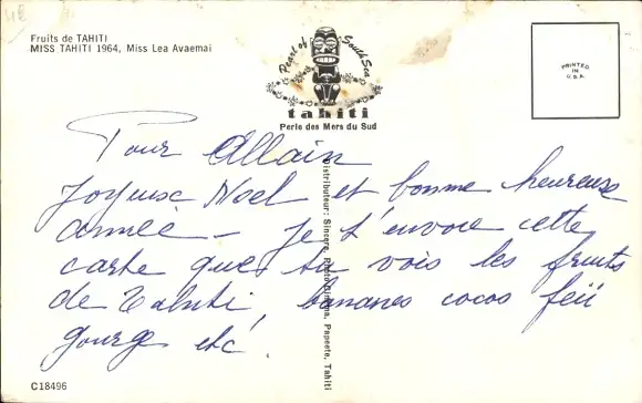 Ak Tahiti Ozeanien, Obst, Miss Tahiti 1964