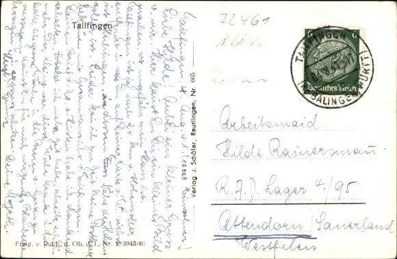 Zustand, siehe Scan, gelaufen, 1941 - ca 14 cm X 9 cm