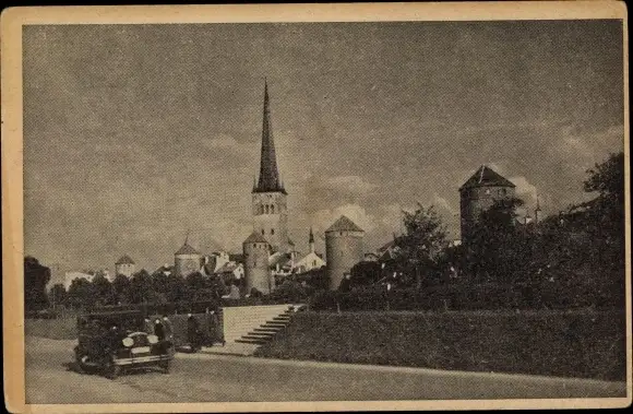 Ak Tallinn Reval Estland, Der Platz der Türme, Die Olaikirche