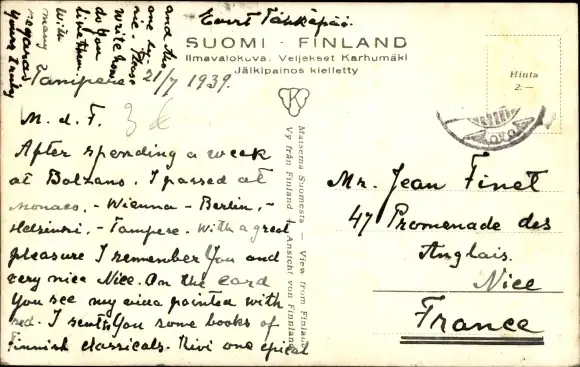 Zustand, siehe Scan, gelaufen, 1939 - ca 14 cm X 9 cm