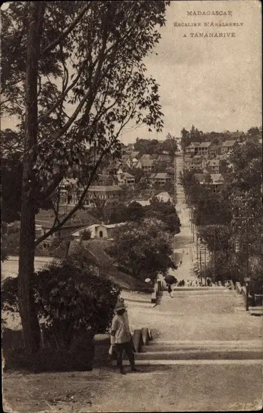 Ak Tananarive Madagaskar, Escalier d'Analakely, Treppe, Häuser