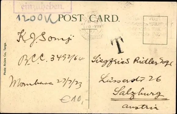 gelaufen 1923, Briefmarke entfernt, sonst guter Zustand