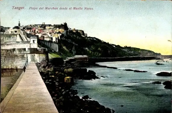 Ak Tanger Marokko, Playa del Marchan vom neuen Pier
