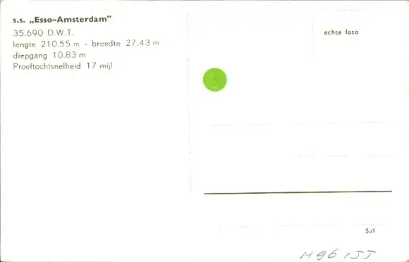 Ak Tanker SS Esso Amsterdam in voller Fahrt auf dem Meer