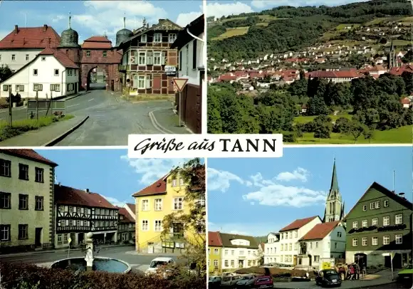 Ak Tann in der Rhön Osthessen, Panorama, Tor, Brunnen, Markt