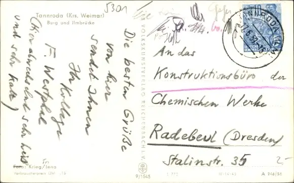 Ak Tannroda Bad Berka im Weimarer Land, Blick auf Burg und Ilmbrücke