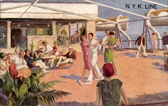 Ak Tanzende Menschen an Bord eines NYK Line Dampfschiffes
