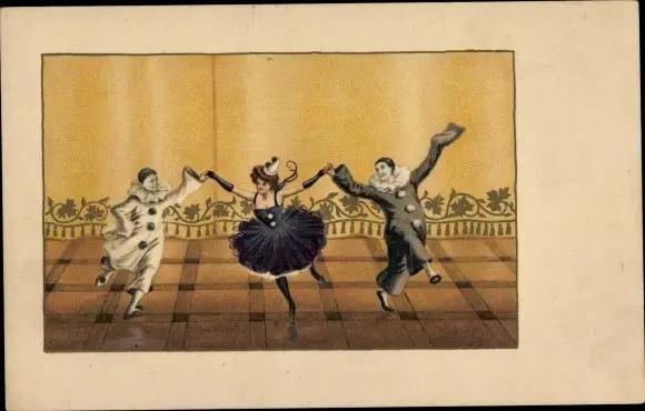 Ak Tanzende Pierrots und Pierrette
