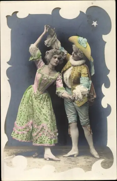 Ak Tanzendes Paar, Frau im grünen Kleid, Stern, Männerhut