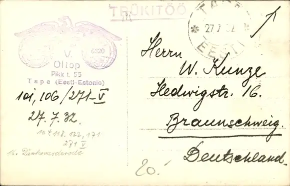 Zustand, siehe Scan, gelaufen, 1932 - ca 14 cm X 9 cm