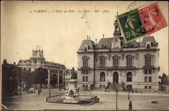 Ak Tarbes Hautes Pyrénées, L'Hotel de Ville, La Poste
