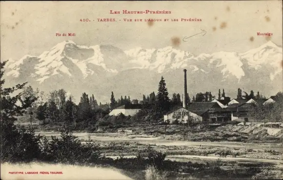 Ak Tarbes Hautes Pyrénées, Vue sur l'Adour et les Pyrenees