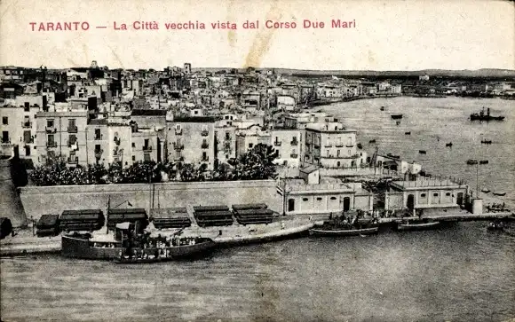 Ak Tarent Taranto Puglia, La Citta vecchia vista dal Corso Due Mari