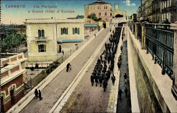Ak Tarent Taranto Puglia, Via Peripato, Grand Hotel d'Europe, Parade