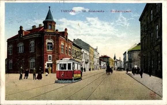 Ak Tarnów Tarnau Polen, Ul. Krakowska, Krakauergasse, Straßenbahn 3