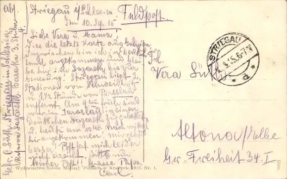 Zustand siehe Scan, 1915, gelaufen - ca 14 cm X 9 cm