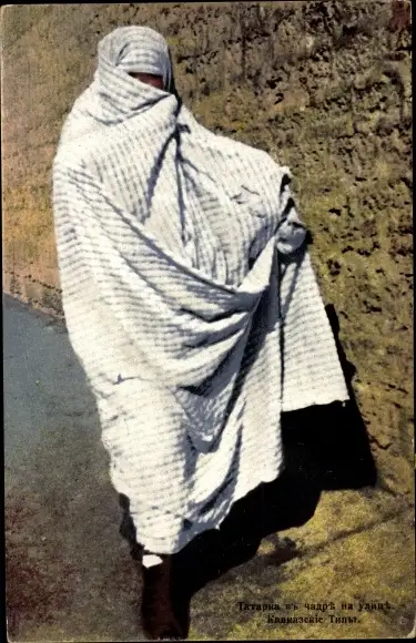 Ak Tartare a visage couvert dans la rue, Types de Caucase, Kaukasus