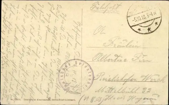 Zustand, siehe Scan, gelaufen, 1918 - ca 14 cm X 9 cm