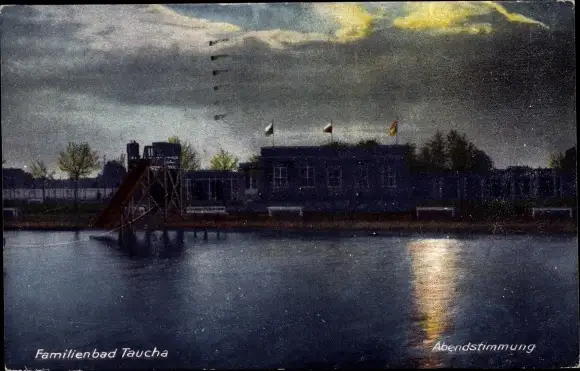 Ak Taucha in Nordsachsen, Familienbad, Abendstimmung
