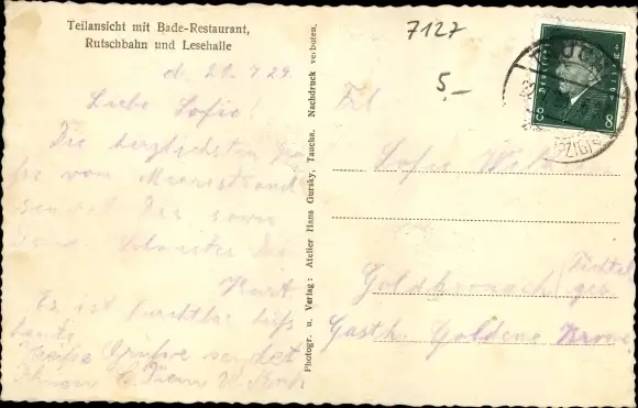 Ansichtskarte, Postkarte, Badeanstalt, Schwimmbad, Freibad, Strandbad, Volksbad