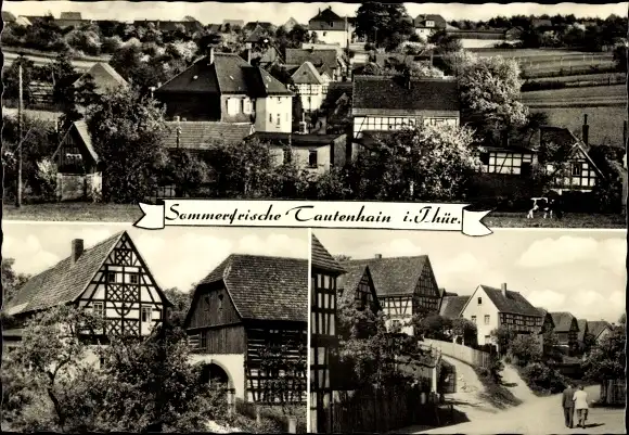 Ak Tautenhain in Thüringen, Blick auf den Ort, Fachwerkhäuser