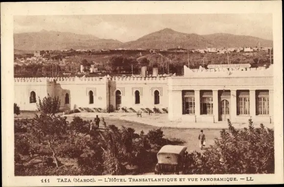 Ak Taza Marokko, l'Hotel Transatlantique et vue panoramique