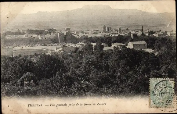 Ak Tébessa Algerien, Vue generale prise de la Route de Zouira