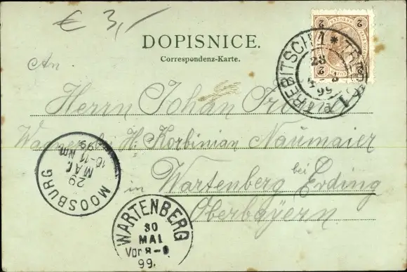 Zustand, siehe Scan, gelaufen, 1899 - ca 14 cm X 9 cm
