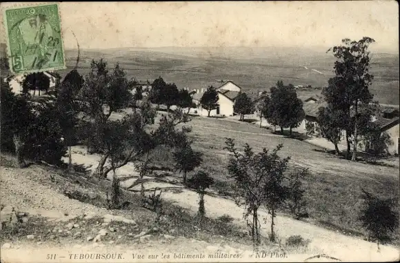 Ak Téboursouk Tunesien, Blick auf die Militärgebäude