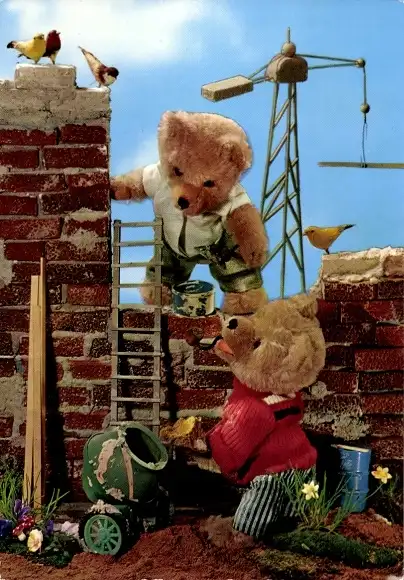 Ak Teddybären, Teddys auf einer Baustelle, Maurer