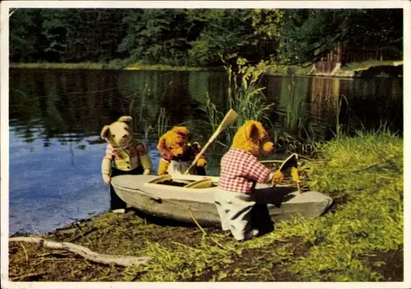 Ak Teddybären mit Kanu, Teddys