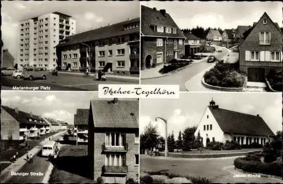 Ak Tegelhörn Itzehoe in Holstein, Marienburger Platz, Danzinger Straße, Jakobi-Kirche, Amselweg