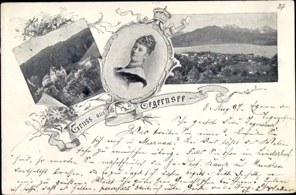 Ak Tegernsee Teilansicht, Portrait einer Adeligen