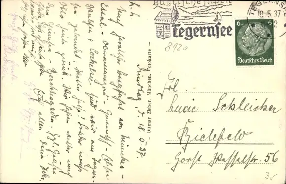 Zustand, siehe Scan, gelaufen, 1937 - ca 14 cm X 9 cm