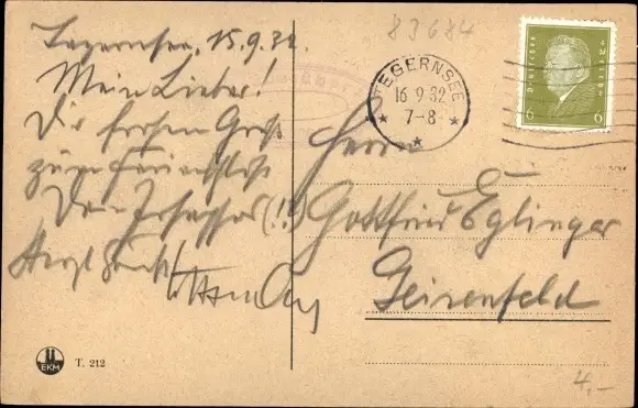 Zustand, siehe Scan, gelaufen, 1932 - ca 14 cm X 9 cm