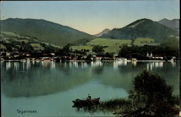 Ak Tegernsee in Oberbayern, Panorama, Boot