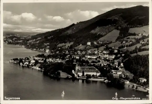 Ak Tegernsee in Oberbayern, Schloss, Fliegeraufnahme