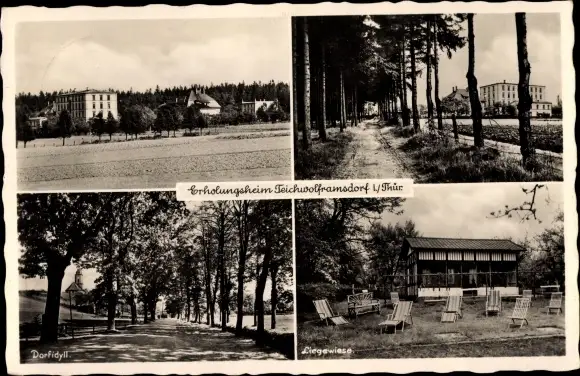 Ak Teichwolframsdorf Thüringen, Erholungsheim, Dorfidyll, Liegewiese, Waldpartie