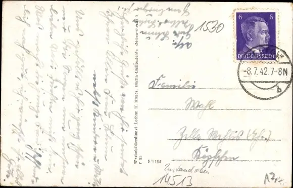 gelaufen 1942, Knickspur oben, sonst guter Zustand