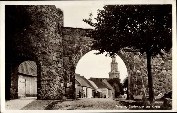 Ak Templin im Kreis Uckermark, Stadtmauer und Kirche