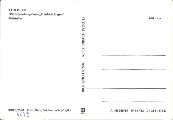 Ak Templin in der Uckermark, FDGB Erholungsheim Friedrich Engels, Klubkeller