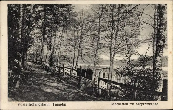 Ak Templin in der Uckermark, Posterholungsheim, Badeanstalt mit Seepromenade
