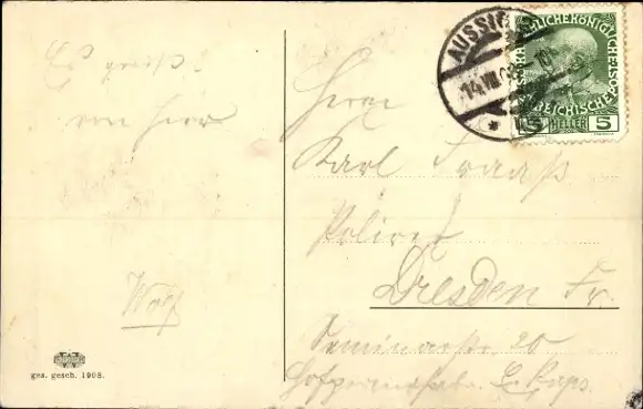 Zustand, siehe Scan, gelaufen, 1908 - ca 14 cm X 9 cm
