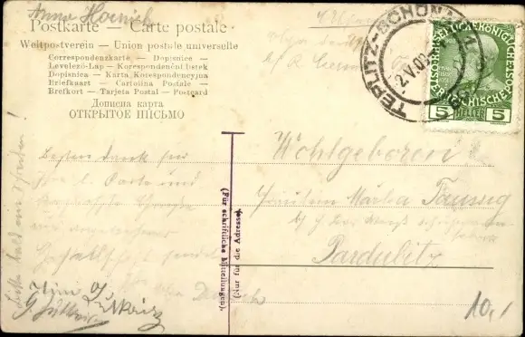 Ansichtskarte, Postkarte, Aussig, Ústí nad Labem, Teplitz, Teplice